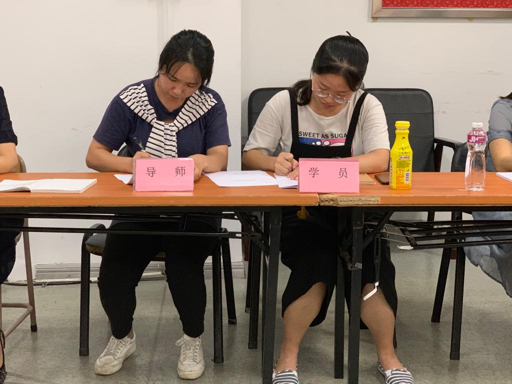 然后,芦旭燕、蒋立维、曹荣军、周婷4位同志对 “导师制”第一季度实施情况作了详细总结;蔡碧浓作为导师与学员谢柳盈签订了导师制合同书。