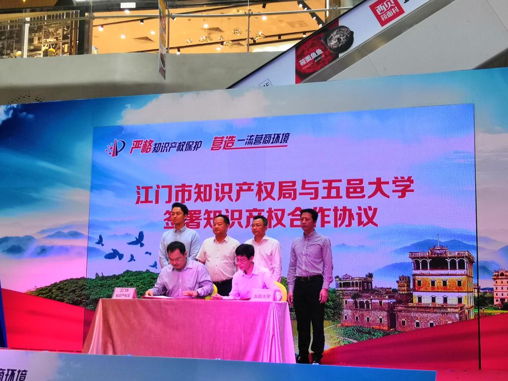 当天,江门市知识产权局与我校签署了知识产权合作协议,共建知识产权保护产学研基地,把知识产权的创造和运用有机结合起来,激发知识产权保护工作恒久的活力。科技处/社科处积极开展参展筹备和服务工作,收集学院(部)报送的各项科研成果,共报送了7项专利成果参加活动,包括:智能搬运AGV小车、四维看看、一种可单手操控的四轮转向移动平台、一种压电陶瓷驱动光栅移相控制中控制电压的标定方法、簕菜提取物抑制α-葡萄糖苷酶的应用、碉楼生铁壶、一种氧化钨纳米花氢气传感器的制备方法。学校参展项目引起了多方关注。