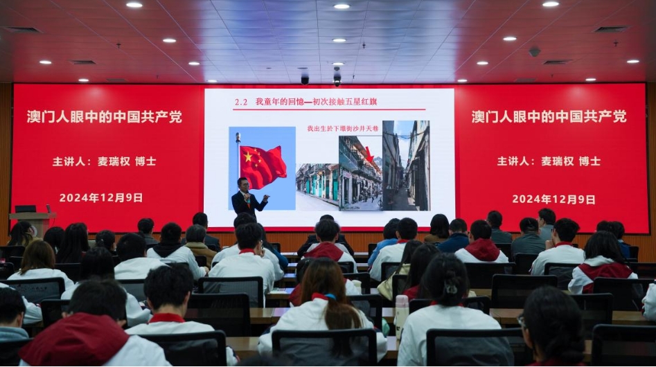 “爱国爱澳是澳门特区的优良传统,青年更是国家的未来。讲好中国故事,讲好澳门故事,全力宣传推广爱国主义教育,薪火相传培养新时代青年是我们这一代重中之重的责任。”日前,广东江门五邑大学策文商学院大楼报告厅内座无虚席,一场特别且生动的爱国主义教育专题讲座——“澳门人眼中的中国共产党”正在举行,这次报告的主讲嘉宾是澳门家国情怀历史学会会长、五邑大学校董麦瑞权博士。
