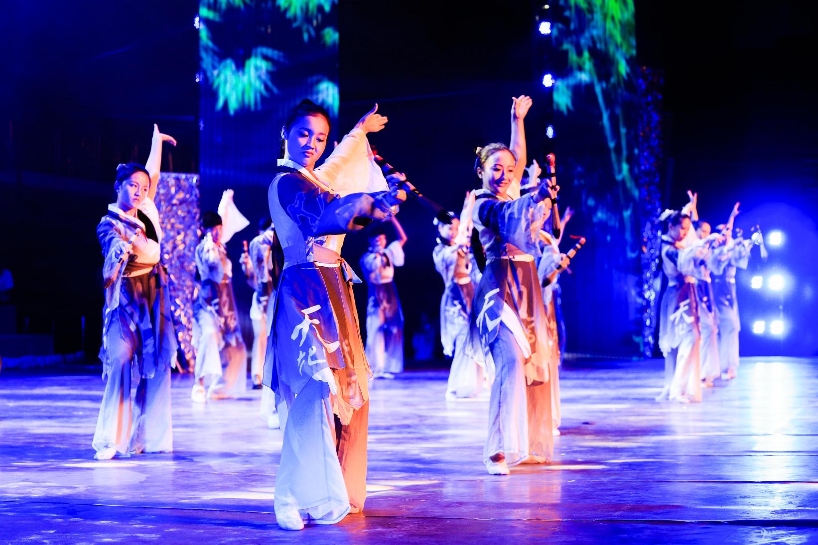 为了更好地发挥地方高校对地方文化的传承与创新作用,我校整合学校人文艺术学科专业及我部、校团委等相关部门,成立五邑大学五邑文艺创作中心,为侨乡的文艺创作服务。此次大型舞蹈诗《新会传奇》就是我校挖掘自身特色,组织优势团队,整合地方资源,历时两个多月着力打造的又一文艺精品。整台演出由我校原党委书记王克担任总策划,我部戴永洁部长统筹,会同新会区文广新局,组织了艺术设计学院、我部、团委、文学院和工会的教师团队撰稿、创编、排练完成。其中,艺术设计学院舞蹈系张友元老师担任总编导、团委副书记曾青云担任总监,舞蹈系王朝旭老师主创、戚雨节老师负责服装设计,舞蹈系和校艺术团的近百名学生利用暑假进行排练,完成节目演出。