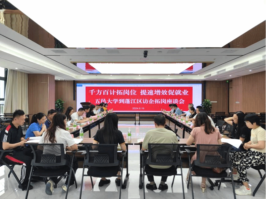 为进一步贯彻落实教育部、省教育厅关于高校毕业生就业创业工作的决策部署,积极响应“高校书记校长访企拓岗促就业专项行动”,6月19日,五邑大学联合蓬江区人社局、蓬江区产业园、棠下镇在蓬江区产业园会客厅开展访企拓岗和政校企合作交流活动。校党委副书记、校长张运华,就业指导与服务中心主任,药学与食品工程学院党政主要负责人等,蓬江区人力资源和社会保障局党组书记、局长张玉等有关负责同志,天地壹号、美心食品、顶益食品、滨崎食品、兰芳园、悠粤食品、海目星、海信、科业电器等企业代表参加活动。