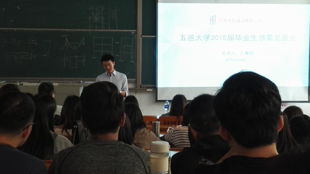 2017年10月24日上午,五邑大学土木建筑学院携同广东华拓建筑有限公司在南主楼202举办2018届毕业生供需见面会。