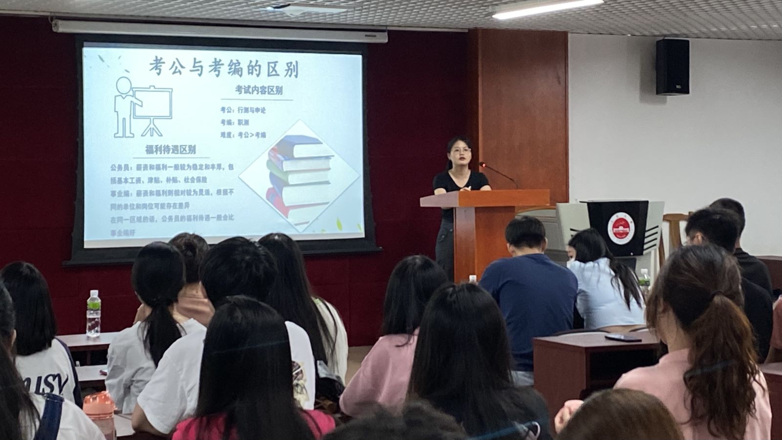 校友梁英杰现就职于中国土木南方建设发展有限公司。他分享了就业经历和成功经验,勉励土建学子要潜心学习,培养持之以恒的精神、自强不息的意识和刻苦耐劳的优良品质。校友马淑芬现就职于肇庆市中洲镇人民政府。她以自己的亲身经历,从笔试、面试两个阶段分享了诸多备考“干货”,还介绍了考公和考编的区别,向师弟师妹们分享自己考公时的好物及方法。