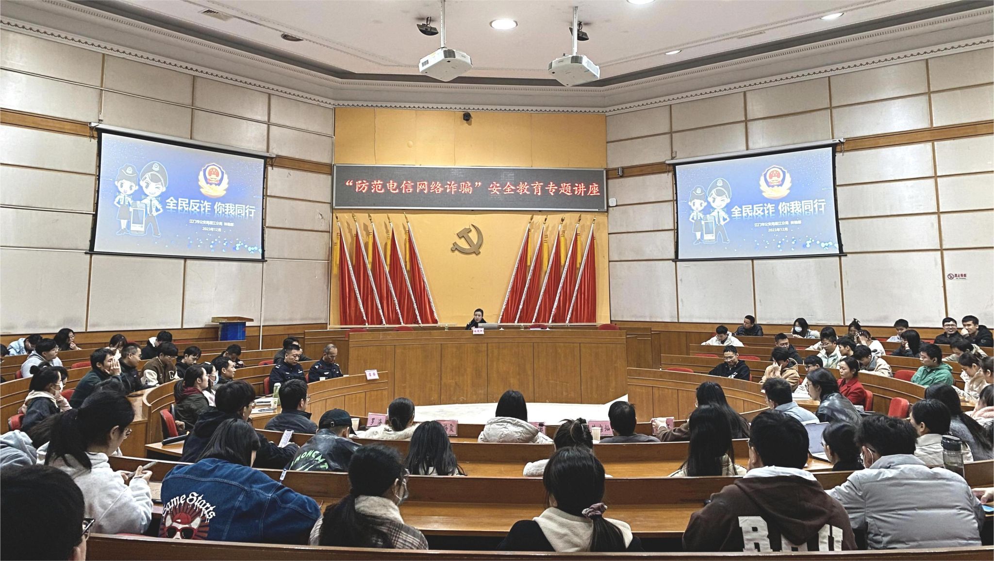林艳娜警官以“全民反诈,你我同行”为主题,通过讲述典型案例、播放反诈系列宣传视频的方式,为师生介绍了电信网络诈骗的6种类型、作案手法、易受骗群体;特别针对大学生群体常见的网络贷款诈骗、冒充客服诈骗、兼职刷单诈骗、“杀猪盘”诈骗的案例进行了详细讲解,采用短视频、图文、互动问答等方式对发生的典型案例进行多方位、多角度剖析,深入讲解反诈知识和应对策略,告诫师生不要轻信陌生电话和微信信息,不点陌生链接,不扫陌生二维码,不下载陌生软件,不向陌生人透露账号密码、短信验证码等,涉及钱财交易要留心眼,提高防范意识和防诈能力。