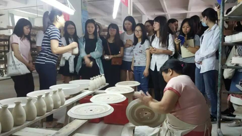 7月1日。环境艺术设计系教师隋志刚老师带领环境艺术设计系151307班级全体同学赴广东省梅州市大埔高陂镇富大陶瓷厂体验考察。学生在考察过程中,深入了解了制瓷的各个工艺流程,并且亲自体验拉胚、画瓷等环节,使学生们对中国传统制陶、瓷工艺有了初步的认识,并对中国传统工艺及文化产生了浓厚的兴趣。